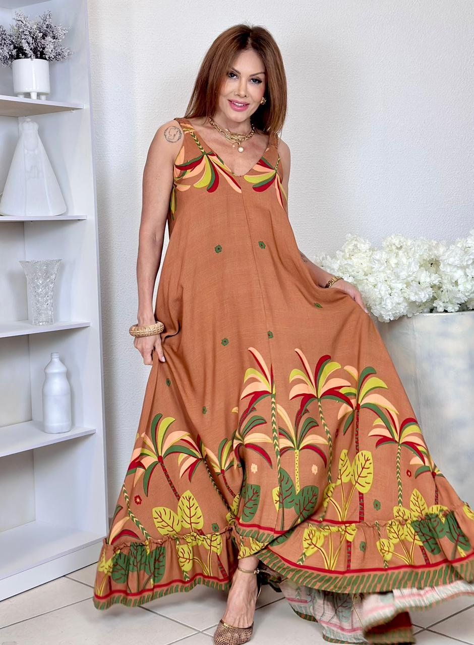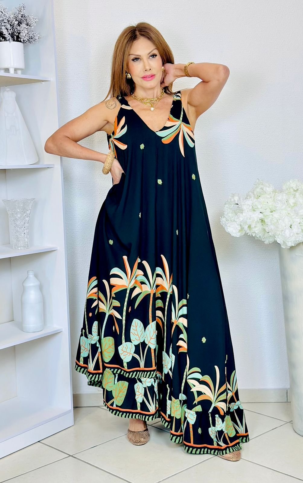 Explosão de cores e caimento fluido que hipnotizam! Combinam o conforte do maxi dress com a sofisticação das estampas que são a cara do verão.